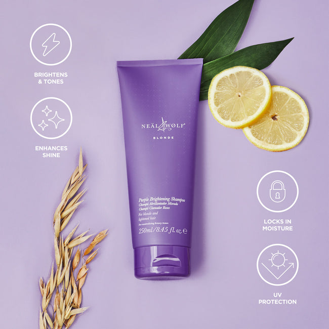 BLONDE Purple Brightening Shampoo is the perfect solution for protecting and enhancing all lightened hair, from blonde and balayage to grey and cool-toned brunettes. This gentle yet effective formula features a blend of Hydrolysed Wheat Protein to strengthen and repair, alongside Glycerin and Panthenol to lock in moisture and enhance softness. Infused with violet pigments to neutralise brassy and yellow tones, it helps to preserve colour vibrancy and leave hair looking brighter, cooler and more radiant. Ideal for use between salon visits, this vegan-friendly shampoo delivers stronger, shinier and more refreshed results with every wash.
